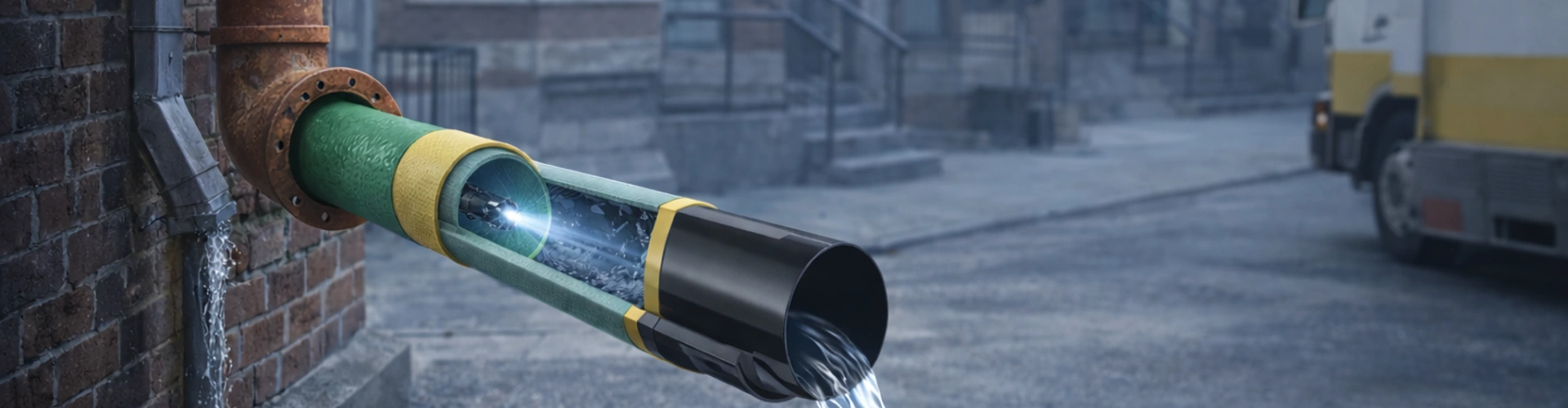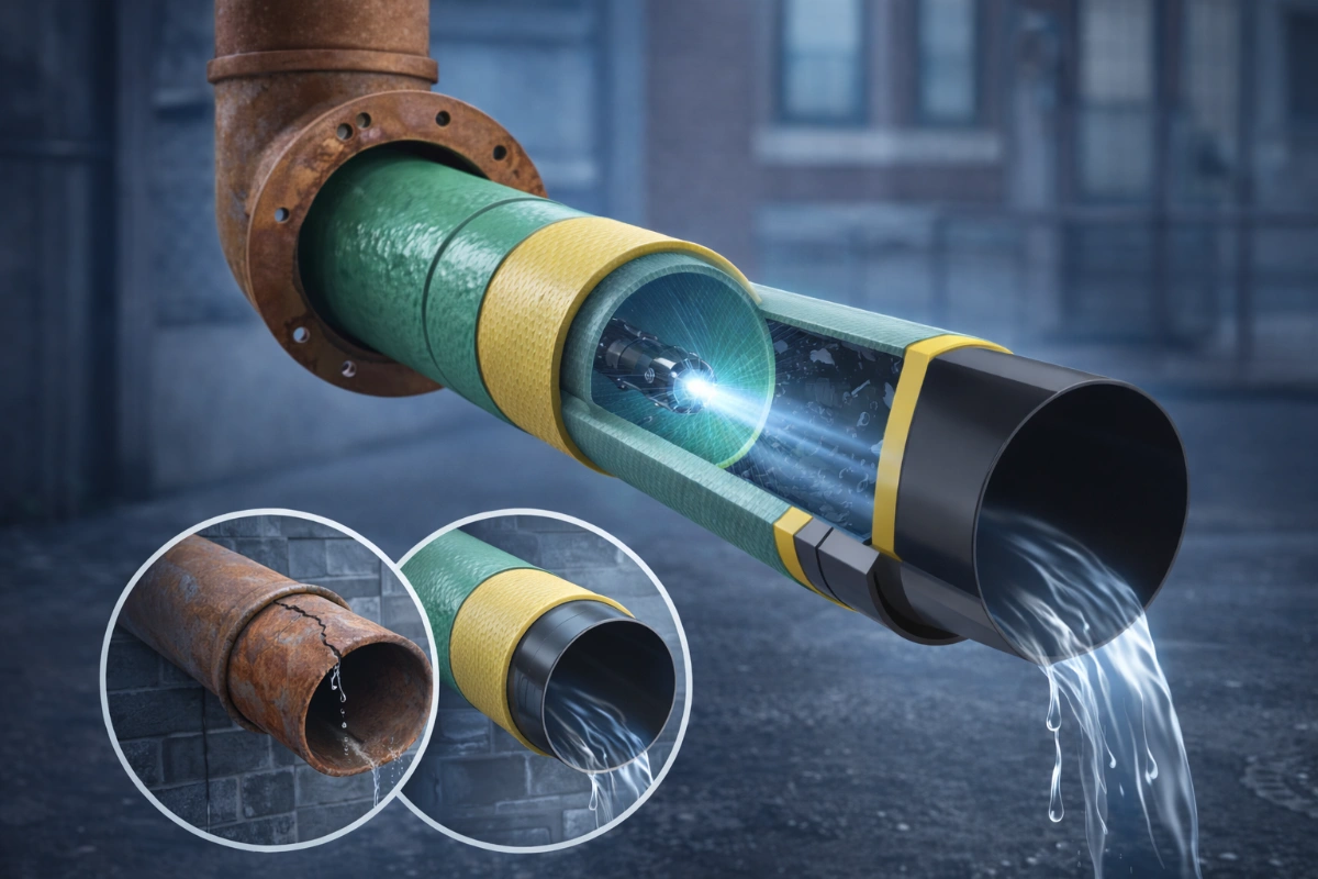 Výsledkem je nové, vodotěsné potrubí uvnitř stávajícího vedení, bez nutnosti bourání.