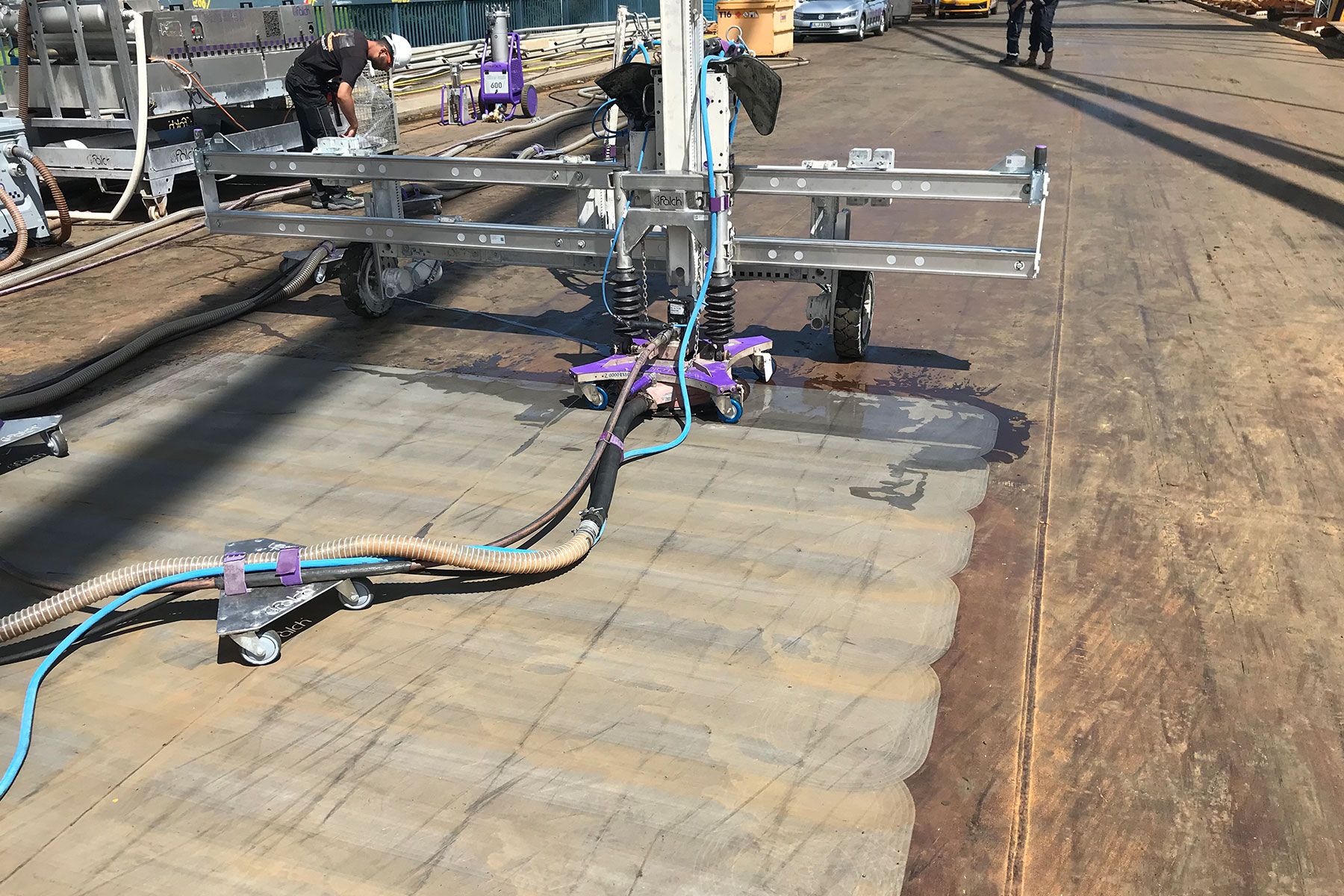 Ultra vysoký tlak zajišťuje špičkovou čistotu povrchu při současném omezení vzniku odpadu. Během jednoho pracovního procesu lze efektivně odstranit více vrstev nátěrů i koroze, aniž by byl narušen základní materiál.